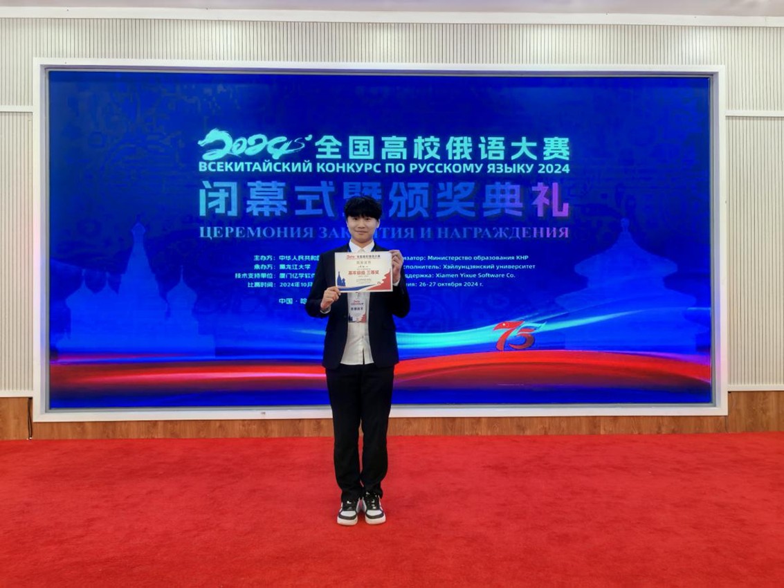 在27日结束的2024年全国高校俄语大赛复赛中公司王建楠同学荣获高年级组三等奖,这是近十几年来公司在该项国家级比赛中的一次重大突破。